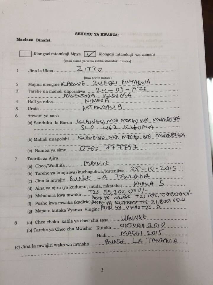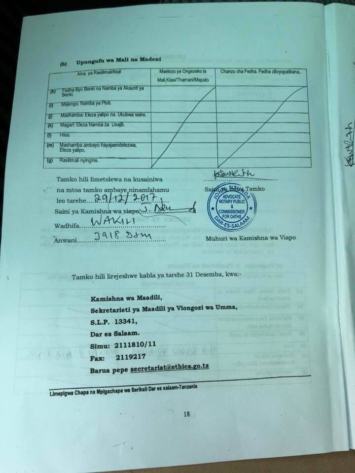 Fomu za Mbunge zittokabwe zinazoonyesha madeni anayodaiwa, mshahara na mali alizonazo kwa mwaka 2017.